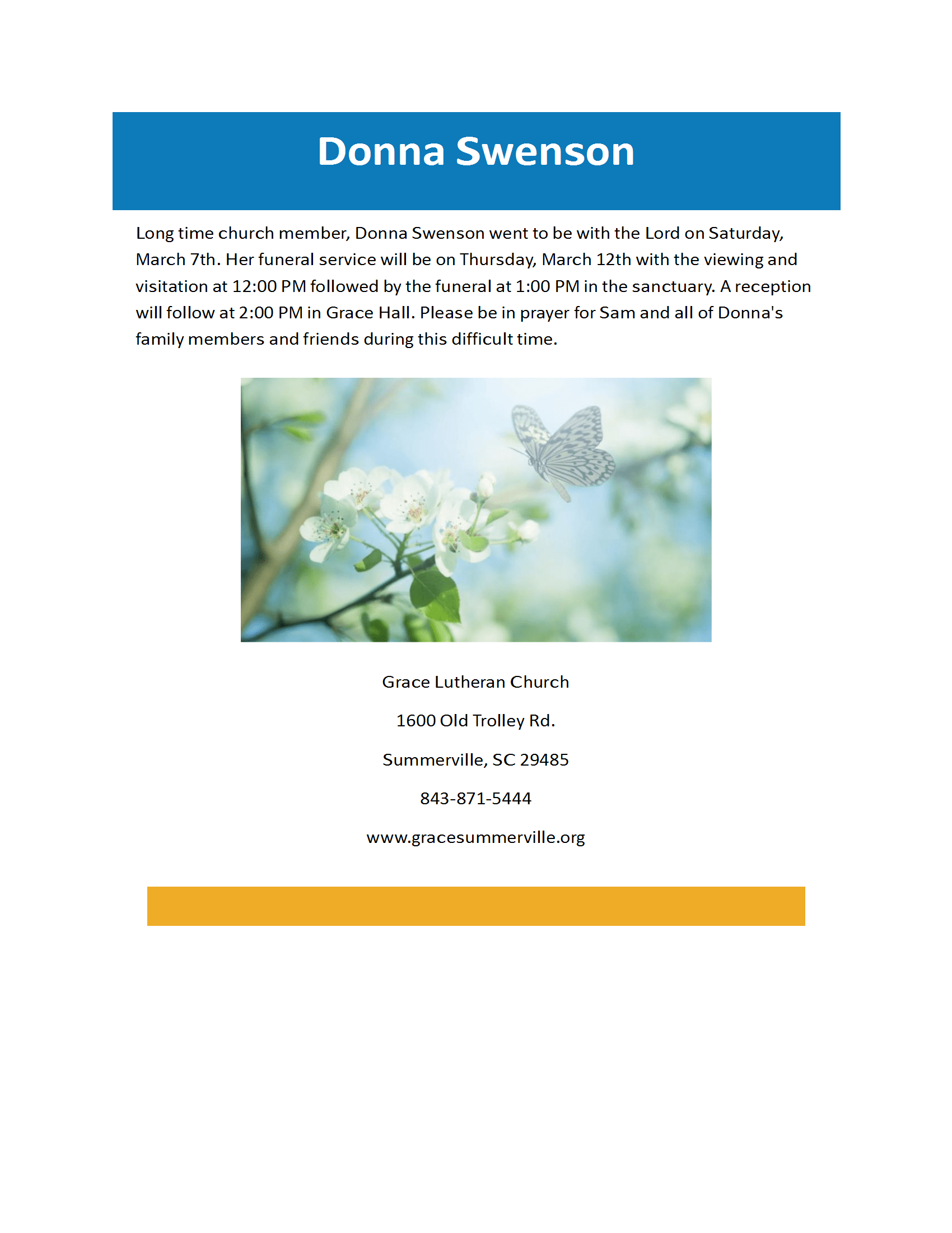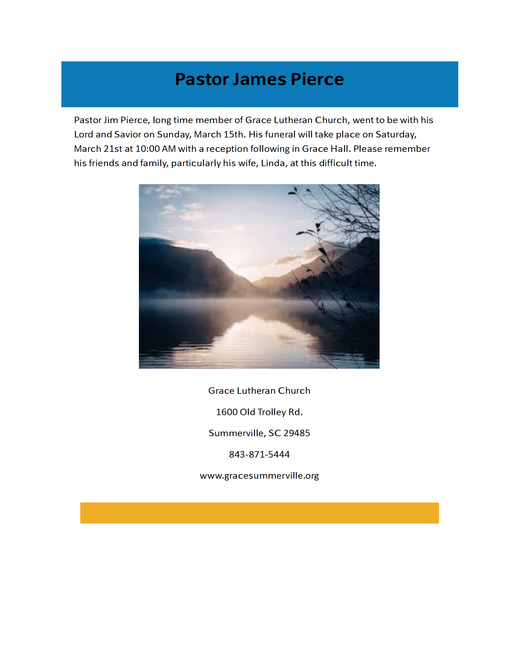 Pastor Bollhagen was Pastor at Grace Lutheran Church in Summerville from 2001 until 2009. His services will be conducted at Grace Lutheran Church in Florida.