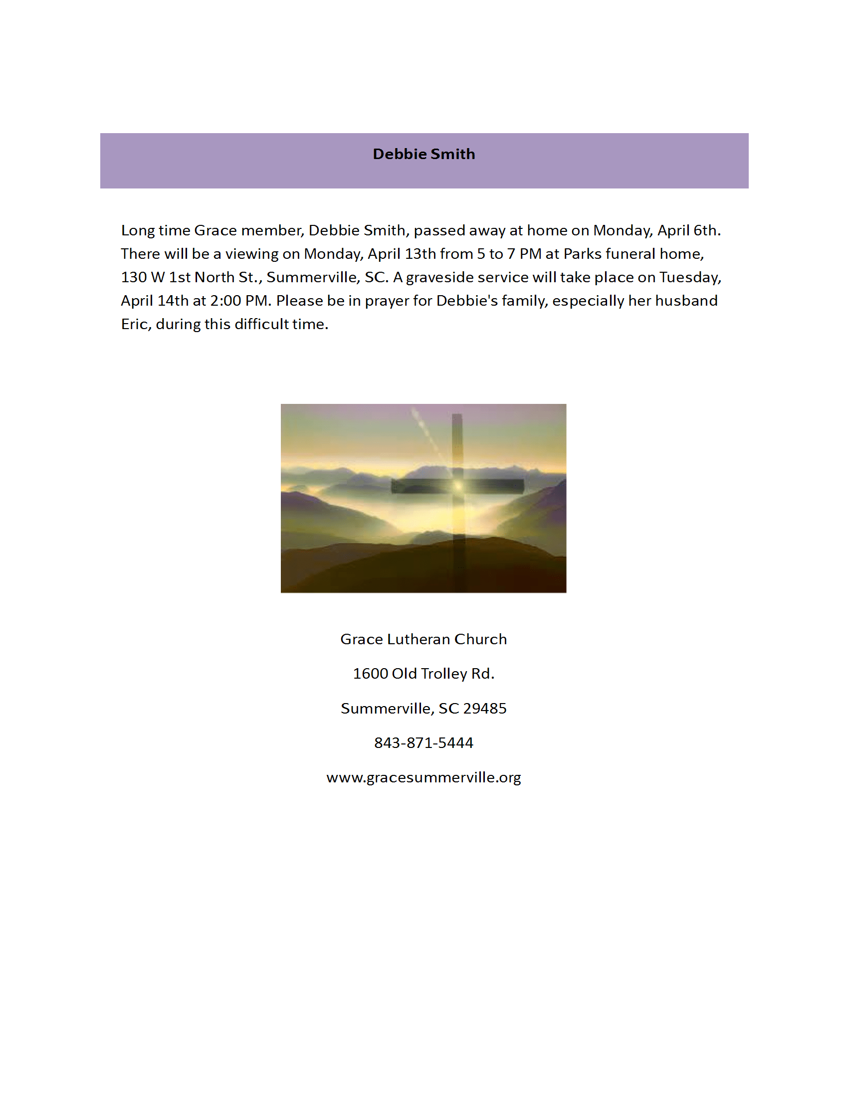 Debbie Smith Passing April 6th, 2026